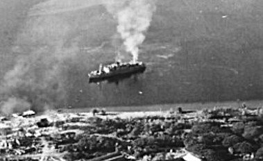 Bombs struck the Oryoku Maru (The ship burns in the photo right). Fires spread. The ship began to sink. Prisoners trapped below decks drowned, burned, or were killed by explosions. Others were shot or beaten as they attempted to escape. More than 200 prisoners died that day.