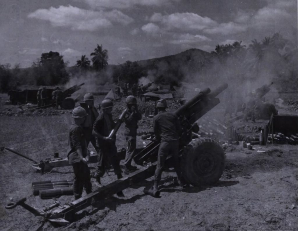 The effect was devastating. Beehive rounds scythed through attacking formations at close range, halting assaults that threatened to overrun the base entirely. Artillerymen worked their guns under fire, exposed to mortars and small-arms fire, knowing that if they stopped, the perimeter would collapse.